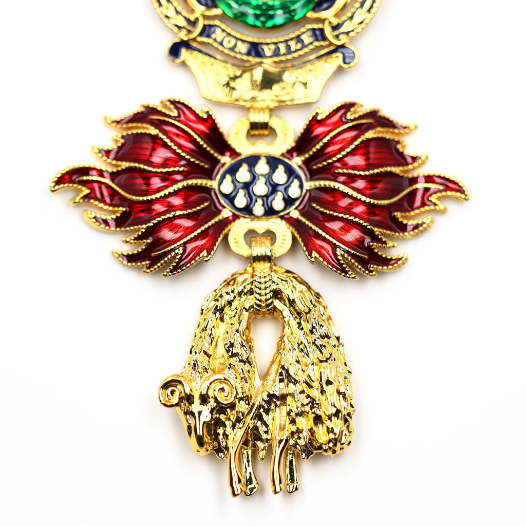 This museum-quality replica faithfully reproduces the Austrian Type 4 Golden Fleece badge with neck ribbon, making it ideal for collectors of Austrian, Habsburg, and European orders of chivalry, as well as for use in reenactments, exhibitions, or educational displays.