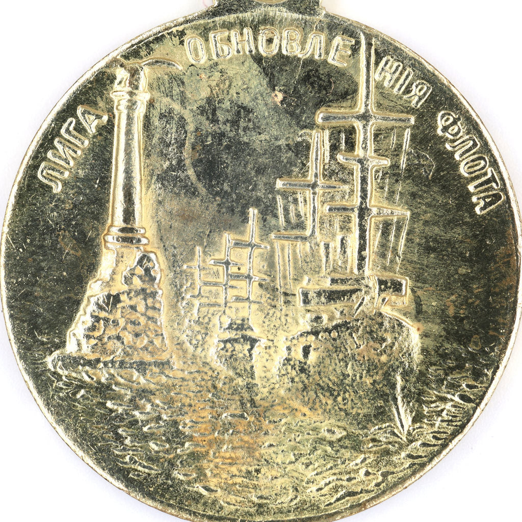 High-quality brass replica of the 1908 Fleet Renewal League medal issued in support of rebuilding the Imperial Russian Navy. The obverse shows the left-facing bust of Tsar Nicholas II with the Russian legend «Б.М. НИКОЛАЙ II ИМПЕРАТОРЪ И САМОДЕРЖЕЦЬ ВСЕРОСС.» (“By God’s Grace Nicholas II, Emperor and Autocrat of All Russia”). The reverse depicts warships off Sevastopol and the monument to the scuttled ships, with the inscription «ЛИГА ОБНОВЛЕНИЯ ФЛОТА» (“League for the Renewal of the Fleet”).