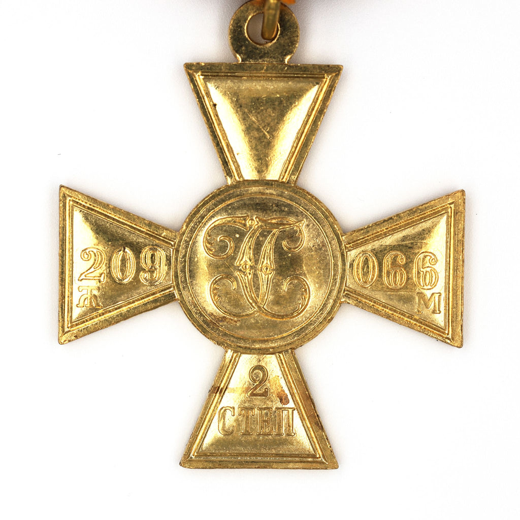 The Cross of St. George was founded in1807as the Russian Empire’s highest gallantry award forenlisted men and NCOswho showed personal courage in battle. It was issued infour classes, from 4th up to 1st, and worn on the distinctiveblack-and-orange “St. George” ribbon, symbolizing smoke and fire of combat. After the revolution the award lapsed, but the tradition was later revived and the Cross re-entered Russia’s awards system in1992. This piece reproduces the classic imperial design for display and study.