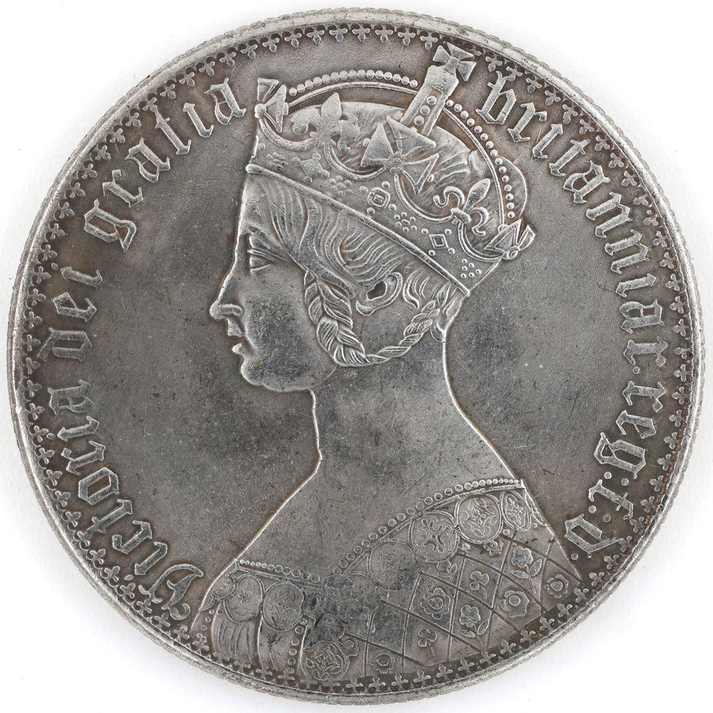 Design: Gothic Crown style with crowned bust of Queen Victoria on the obverse and detailed royal arms on the reverse.