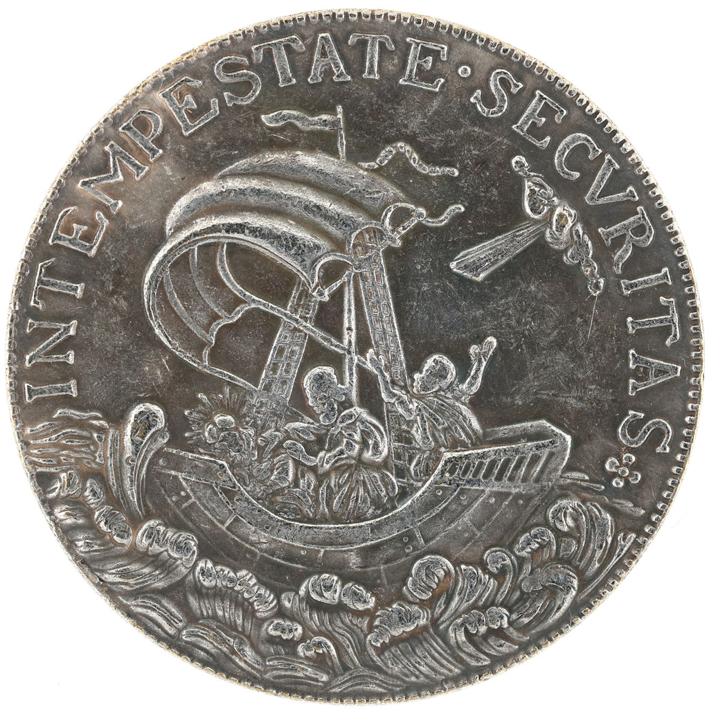 ✝️ Reverse: Christ with His disciples in the storm, legend SECVRITAS IN TEMPESTATE (“Safety in the Storm”), a powerful reminder of Christ’s protection and divine guidance even in life’s greatest trials.