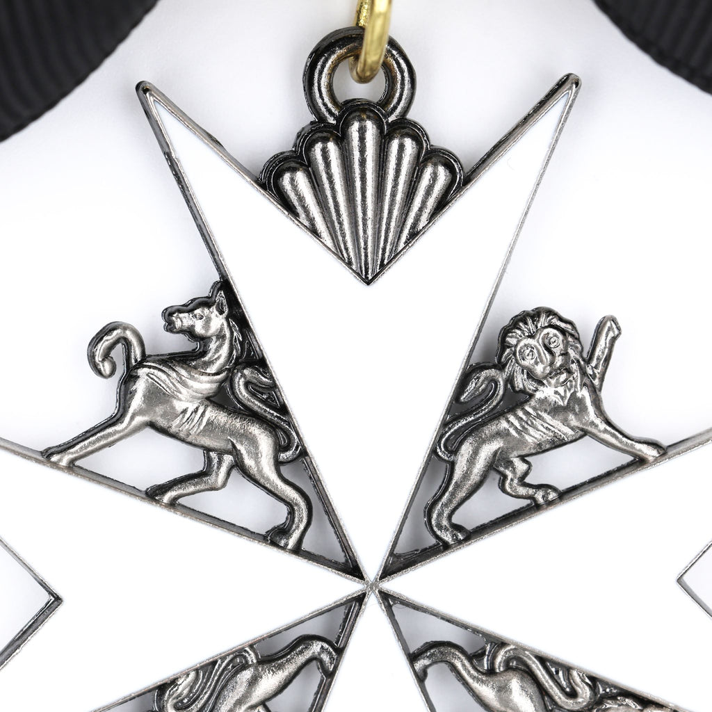 This listing is for a REPLICA / REPRODUCTION of the Order of the Hospital of St John of Jerusalem in England (The Most Venerable Order of St John) — Badge of a Lady of Grace, mounted on a traditional black ladies’ bow.
