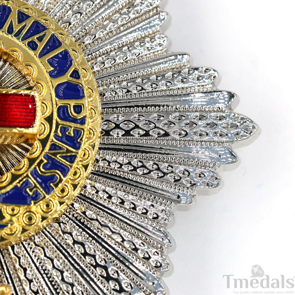 Deluxe Gilt-Garter Star – silver starburst with rich gilt garter & scroll accents.