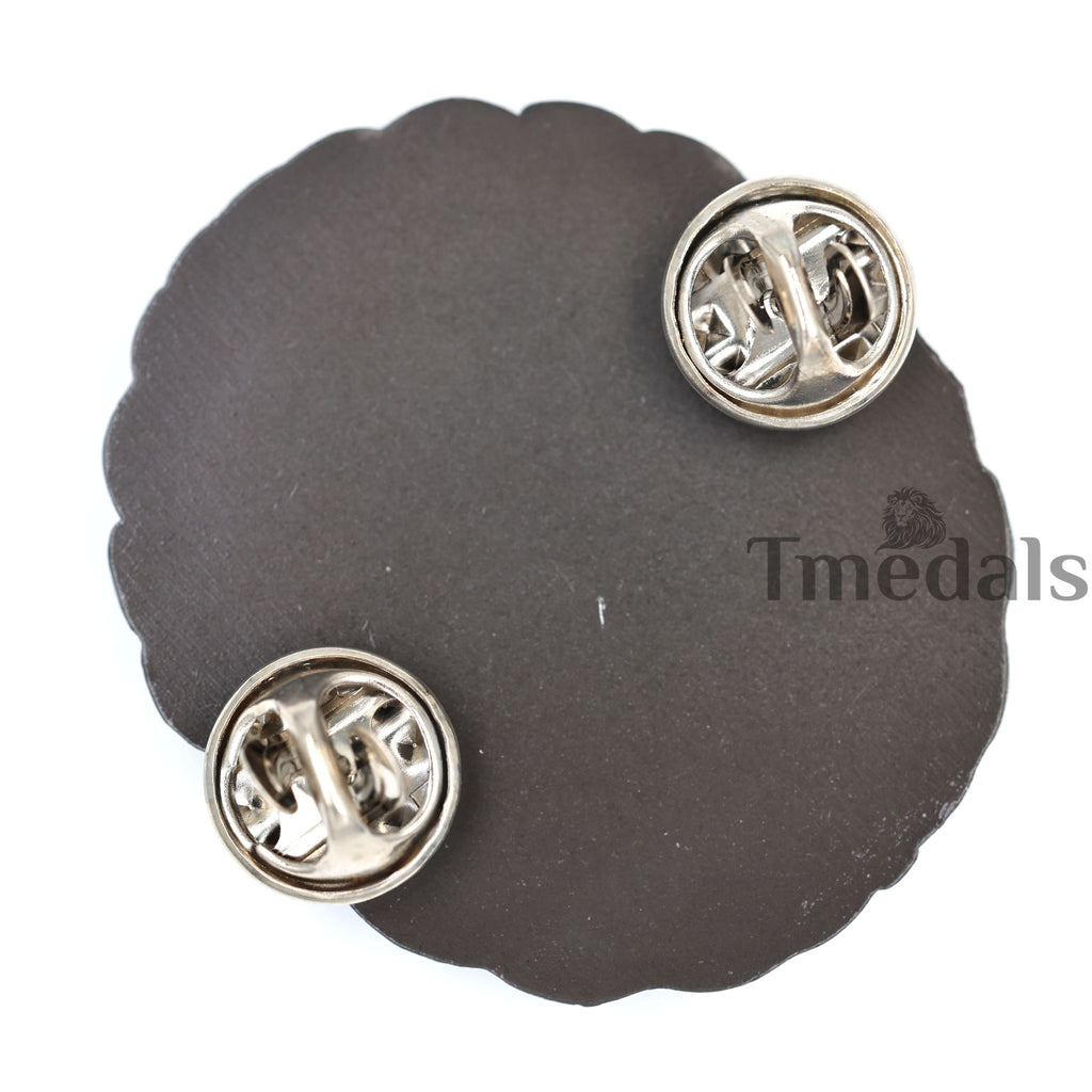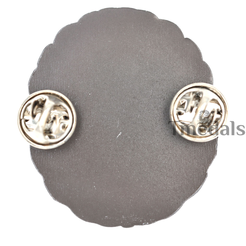 Attachment: Dual clutch pinback (secure on clothing/board)